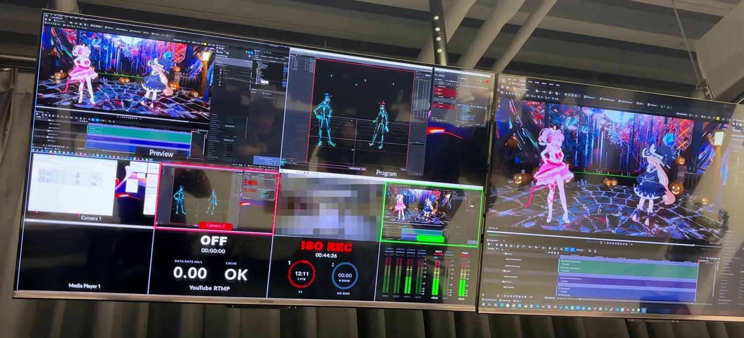 유니티 포맷으로 제작된 캐릭터와 배경 어셋을 언리얼 엔진에서 라이브 프리비즈가 가능하도록 어셋 변환,쉐이더 작업 및 룩뎁 작업을 진행하였습니다. 아울러 라이브 모캡과 실시간 멀티뷰 스위칭,Vcam 사용이 가능하도록 StageV 솔루션을 적용하여 라이브 연출에 대응할 수 있도록 셋업 작업을 진행하였습니다.