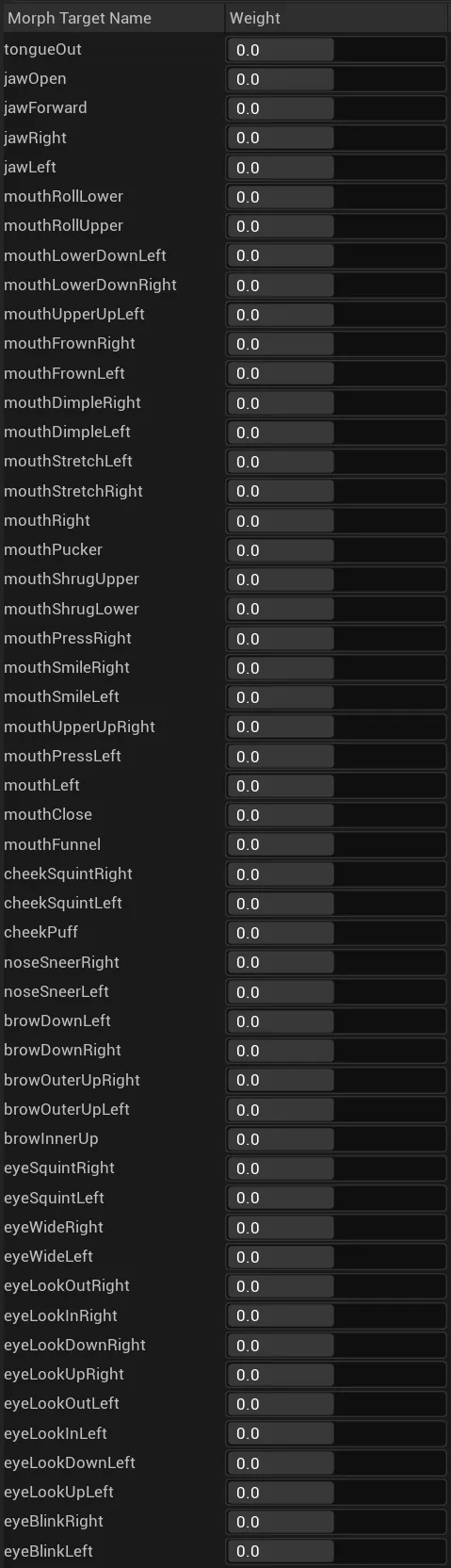 그러므로 페이셜 캡처할 캐릭터에는 51개의 블랜드 쉐입이 세팅이 되어 있어야 함