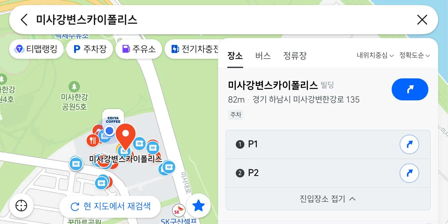 미사강변스카이폴리스는 주차장 진입지점이 2곳 있습니다.