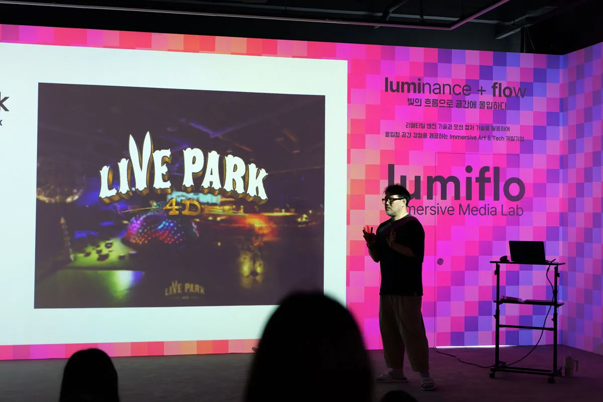 특강 후, 이머시브 스테이지에서는 언리얼 기반 이머시브 콘텐츠의 실시간 시연이 진행되었습니다.