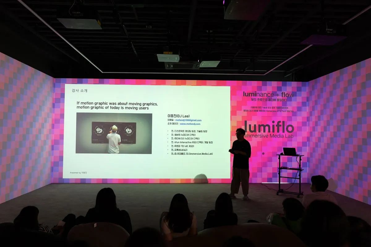 지난 6월 2일, "Physical to Digital, Digital to Physical"을 주제로 언리얼 애니메이션 제작인력 양성과정 특강을 진행하였습니다. 이 특강은 루미플로의 이머시브 스테이지에서 개최되었으며, 언리얼 애니메이션 제작인력 양성과정에 소속된 20명의 학생들이 참여하였습니다.
